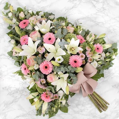 Le bouquet plat de deuil est une composition florale raffinée, spécialement conçue pour accompagner vos messages de soutien et de souvenir. Chaque fleur est soigneusement coupée et piquée dans la mousse, garantissant une tenue parfaite et une belle fraîcheur.